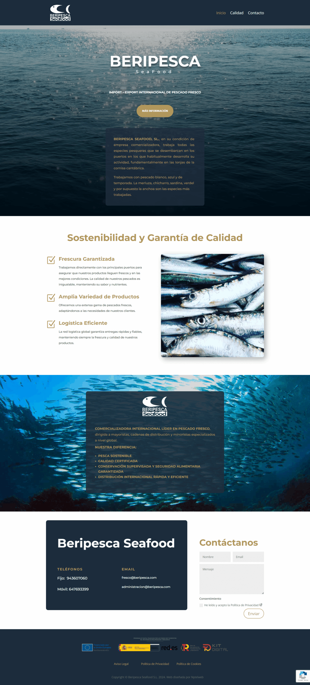 Beripesca Seafood SL. comercializa diversas especies pesqueras de la cornisa cantábrica, y Nytelweb creó para ella un diseño web personalizado, estético y fácil de usar.