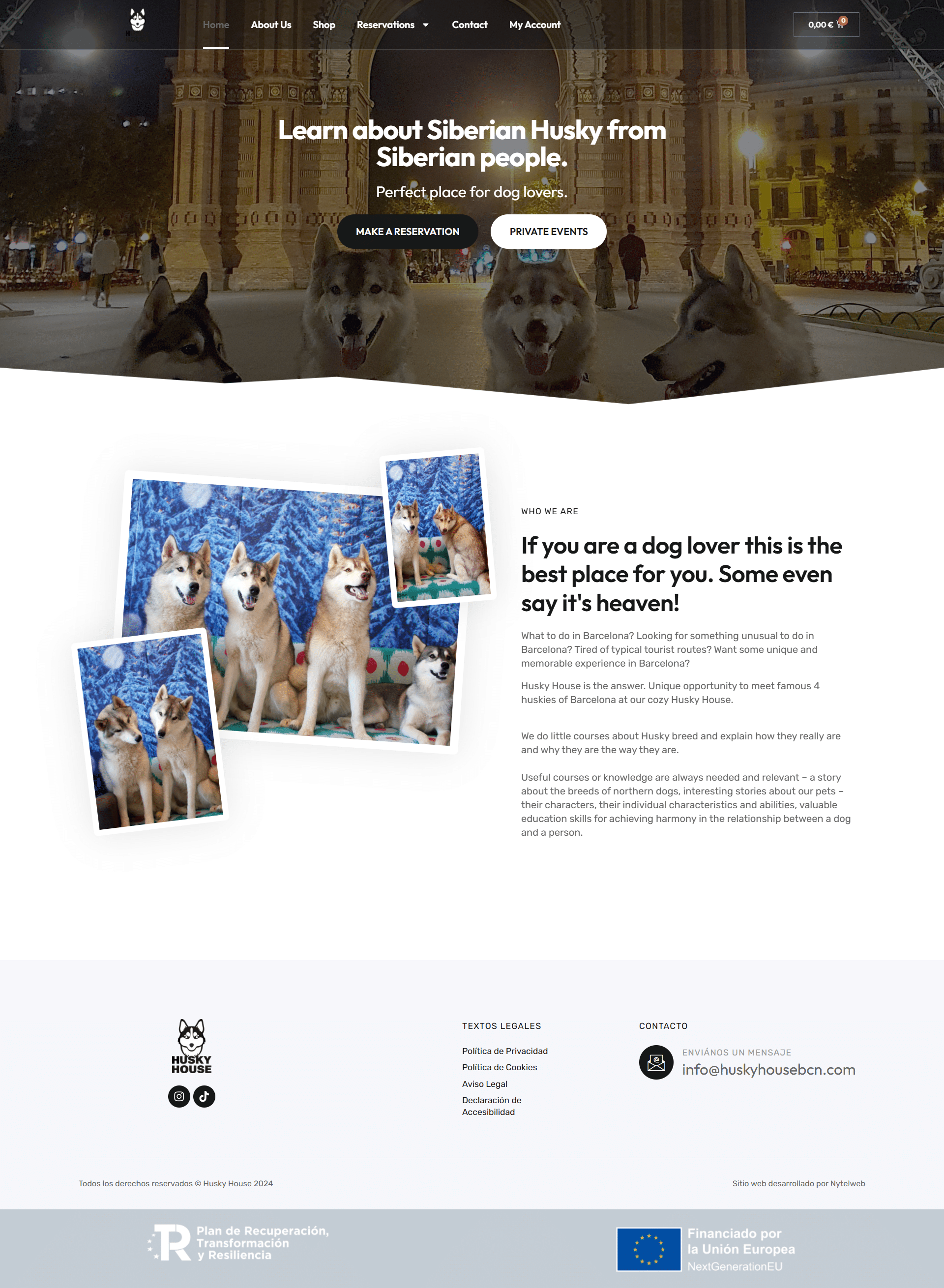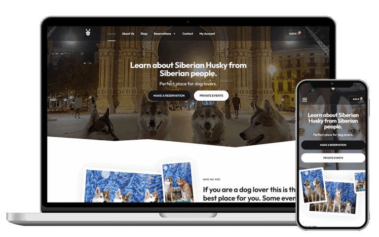 Husky House es el primer café para perros de Barcelona, creado en 2019 para acercar a las personas a los huskies siberianos y enseñar cómo cuidarlos mientras disfrutan de su compañía.