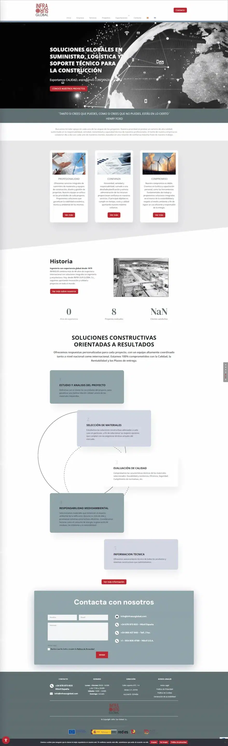 En colaboración con Nytelweb, se ha desarrollado una web moderna y funcional que refleja los valores de profesionalidad, confianza y compromiso de Infrasur Global, reforzando su liderazgo en el ámbito de las soluciones constructivas.