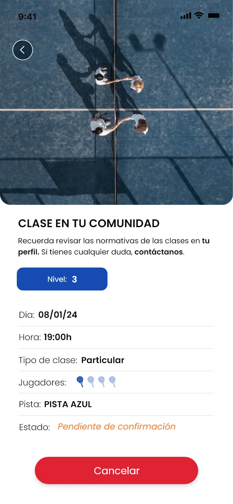La aplicación también permite solicitar clases de pádel directamente con los entrenadores del club, ya sea desde tu comunidad o en el propio club, abriendo nuevas oportunidades de aprendizaje y mejora.