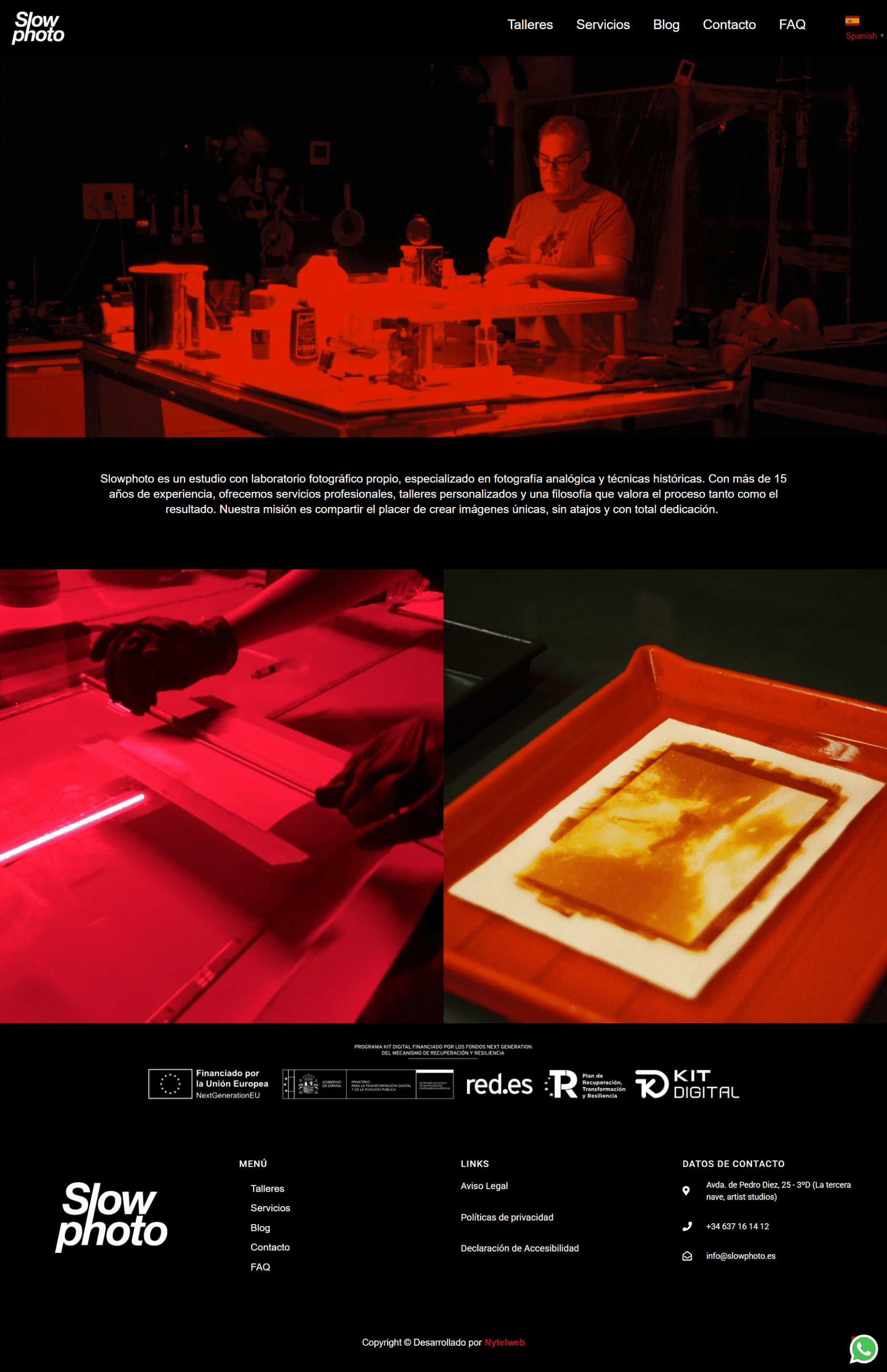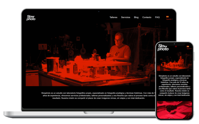 Con más de 15 años de experiencia, Slow Photo necesitaba una plataforma digital que reflejara su compromiso con los procesos fotográficos tradicionales, como el colodión húmedo o el carbón transportado, y que facilitara el contacto con artistas interesados en estas técnicas. Nos enfocamos en crear una experiencia visualmente atractiva, funcional y fiel al espíritu artesanal de su trabajo. La web no solo presenta sus servicios de producción y asesoramiento, sino que también destaca sus capacidades técnicas, como la utilización de una de las insoladoras más grandes de Europa.